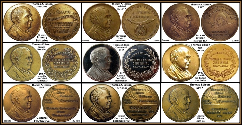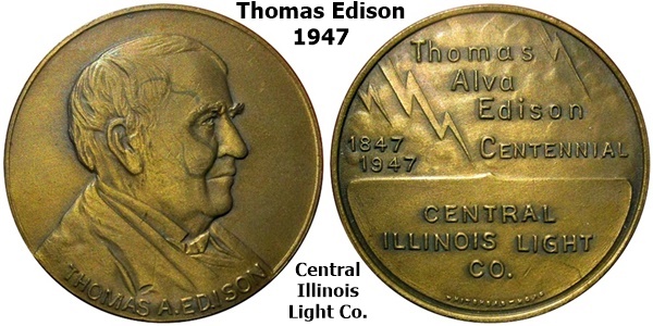 1947 Thomas A. Edison Bronze Centennial 1847-1947 (bronze issues are also easily found, I have not added one yet.)