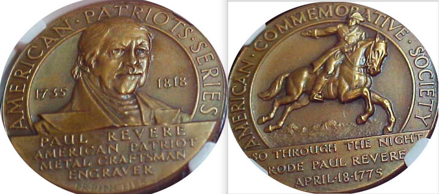 The Battle of Lexington, the Daniel Boone, the Lindbergh, the Antarctic Expedition and the Pony Express pieces were all originally issued prior to 1947; Whitehead and Hoag re-struck these medals for Smith from the dies they had used in prior years.