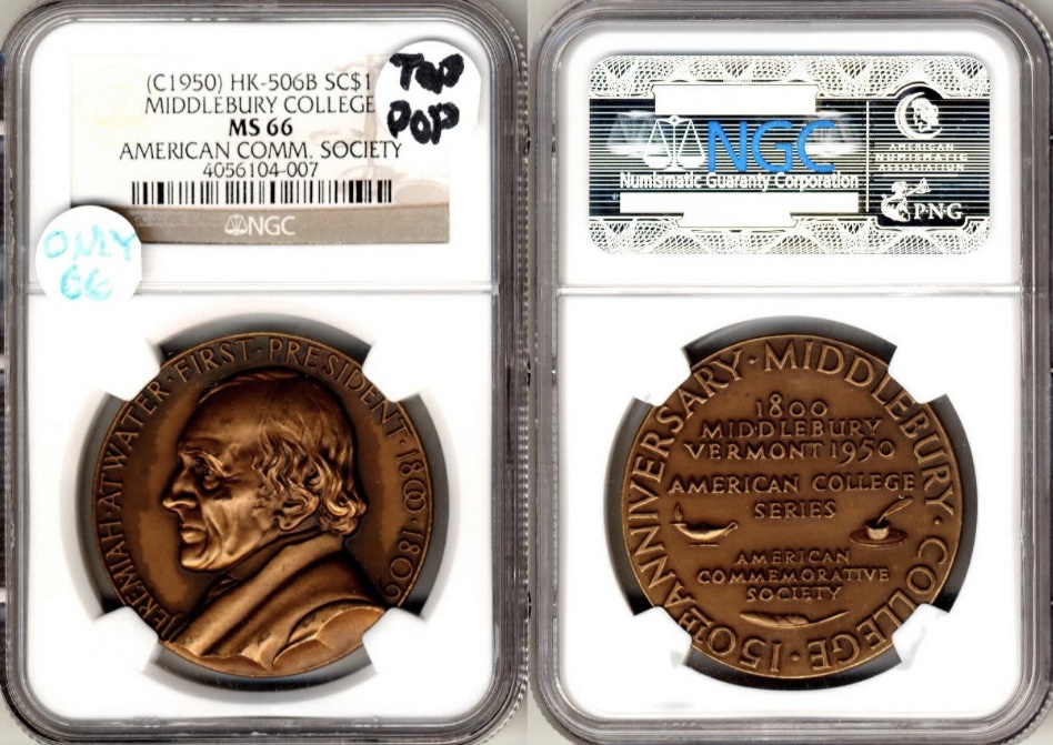 I have never seen another but it does get mentioned along with Paul Revere Dollar HK-506, Telephone Diamond Jubilee Dollar HK-506a, and Middlebury College Dollar HK-506b elsewhere but without images.This 50mm Bronze medal is uncirculated and appears to include the original box.