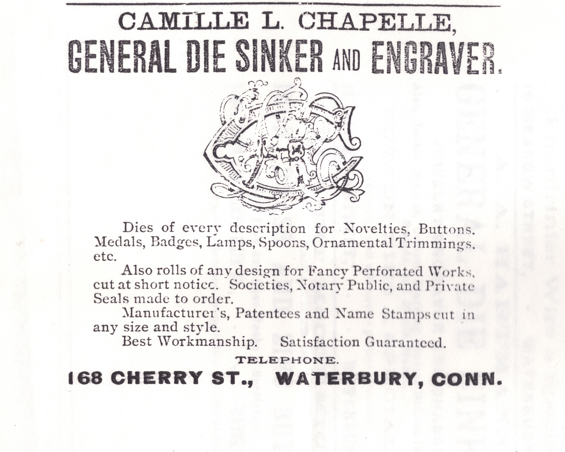 CHAPELLE, Camille L. (1848-1923) engraver, diesinker, Waterbury, Connecticut.