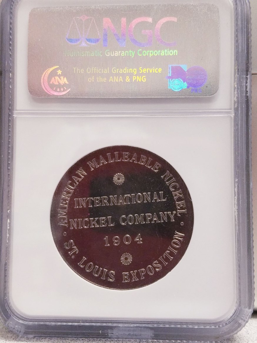 THIS IS THE ONLY SO-CALLED DOLLAR THAT I HAVE EVER SEEN GRADED WITH A STAR DESIGNATION. I BELIEVE THE REASON THAT NGC GAVE THIS MEDAL THE STAR DESIGNATION IS THAT IT IS NOT STRUCK THRU ON THE REVERSE AS MANY EXAMPLES OF THIS TYPE ARE. IT IS ALSO ABOUT AS PROOFLIKE AS NICKEL GETS, I HAVE NO IDEA WHY IT WAS NOT GIVEN A PL OR DPL DESIGNATION.