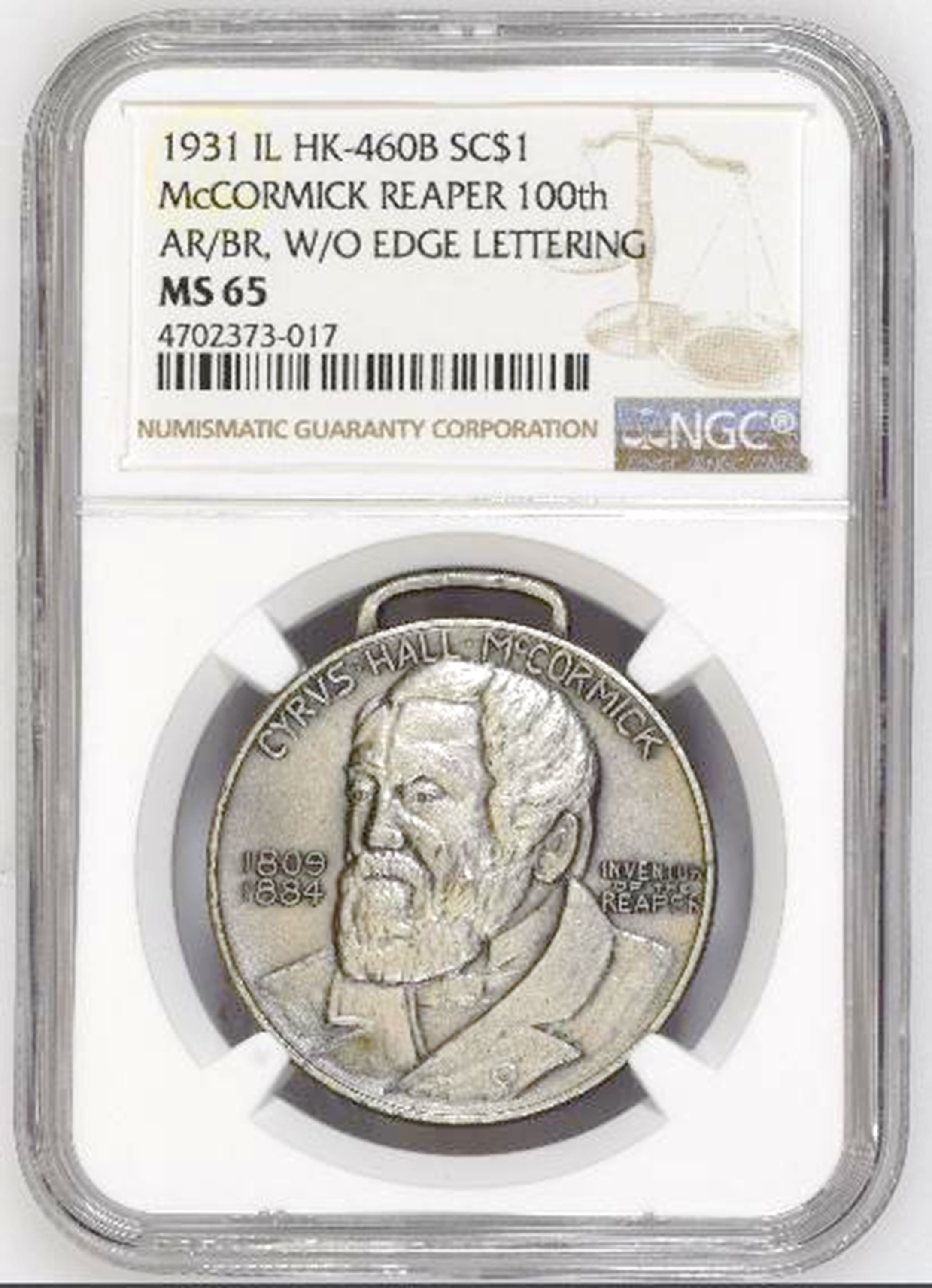 Here is a fairly rare silver/plated HK-460B which in the Bronze version is probably the most common So Called Dollar. This is the only Silver Plated McCormick which has been recognized and slabbed by NGC and is the TOP POP at MS65