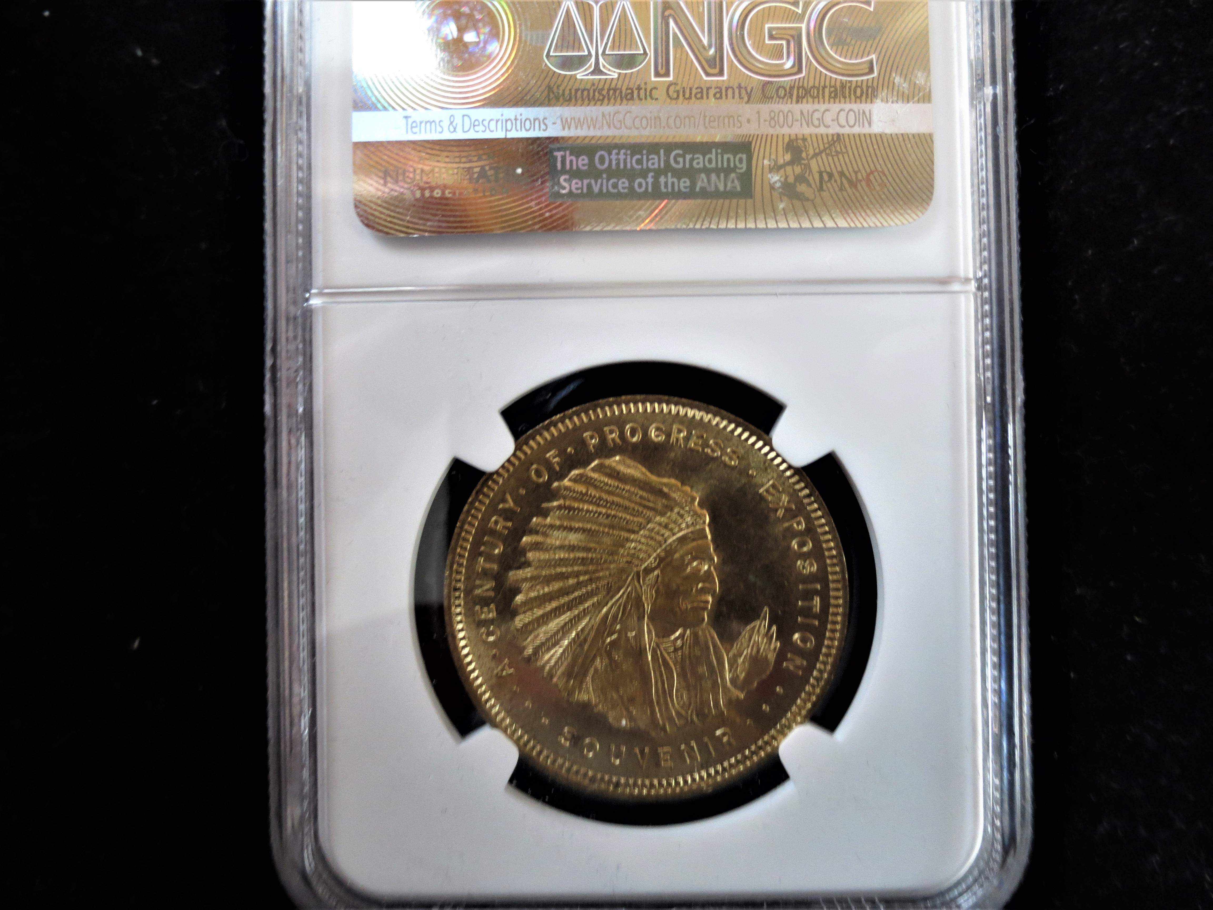 Not a difficult so-called dollar to find. I have two of them, one graded by NGC shown here and another I am not showing but in comparable condition. The one I'd like to track down at a good price is the much more elusive HK470a. That one has an Indian and a woman with an "I Will" headband.
