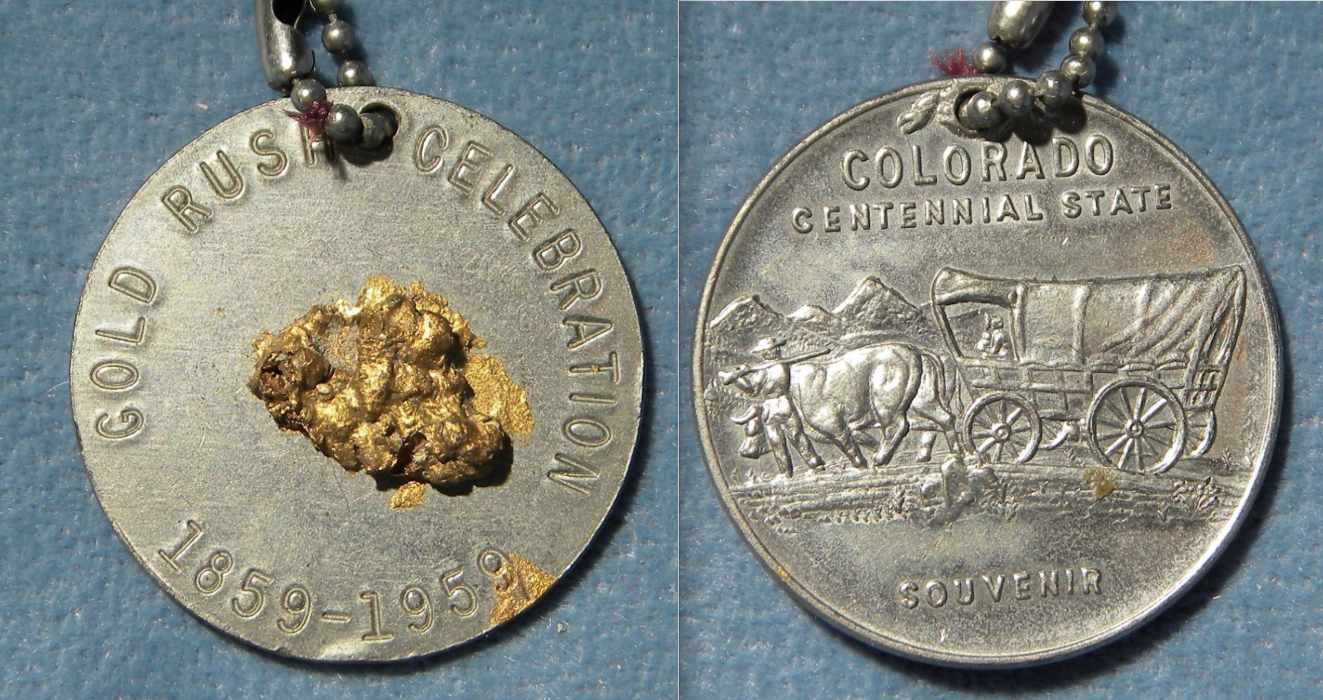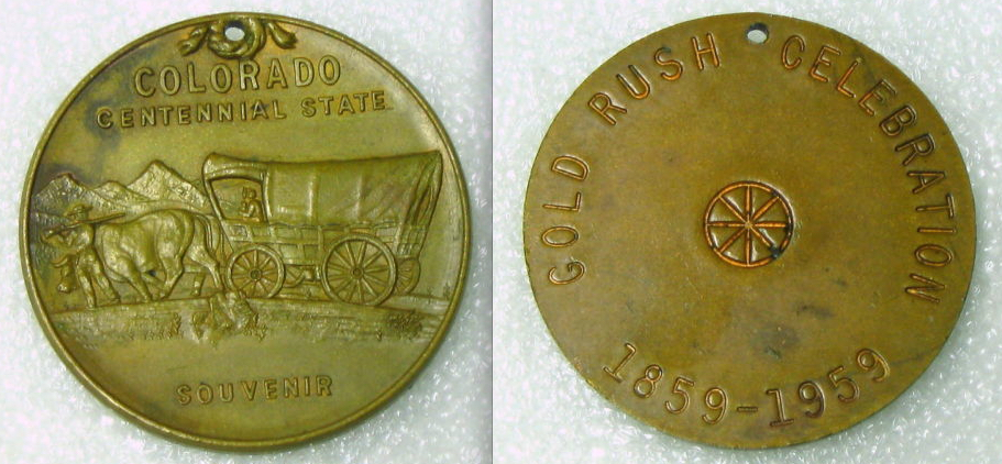 Quote from Pioneer on May 4, 2012, 9:35 pmIt looks like the small spoke-wheel "design" on the reverse in this photo was there to hold the glue that attached a "nugget." Interesting piece. I wonder if they all had nuggets that fell off over the years or if a number were issued without the nuggets.
