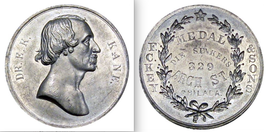 I noticed the marking "Key F" under the bust on the obverse of the Elisha Kent Kane (HK-756/7) piece, and I traced it to William H. Key and then was able to buy this piece (storecard). The following link details who this die sinker & engraver was: http://www.neocollect.com/coll/403/?page=3 William H. Key was a die sinker and engraver, born in Brooklyn NY, who learned engraving from his father, Frederick C. Key. Both son and father worked in Philadelphia (1854-1860) as F.C. Key & Son. William actually did the engraving work, implying that William H. Key engraved the HK-756/7 pieces. William worked productively for the US Mint for many years (1864-1885). Please see the attached link for many of his medals.